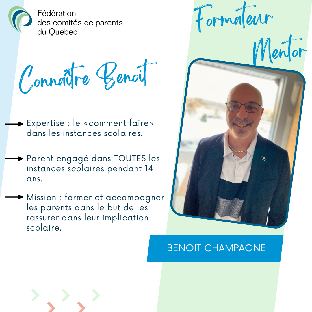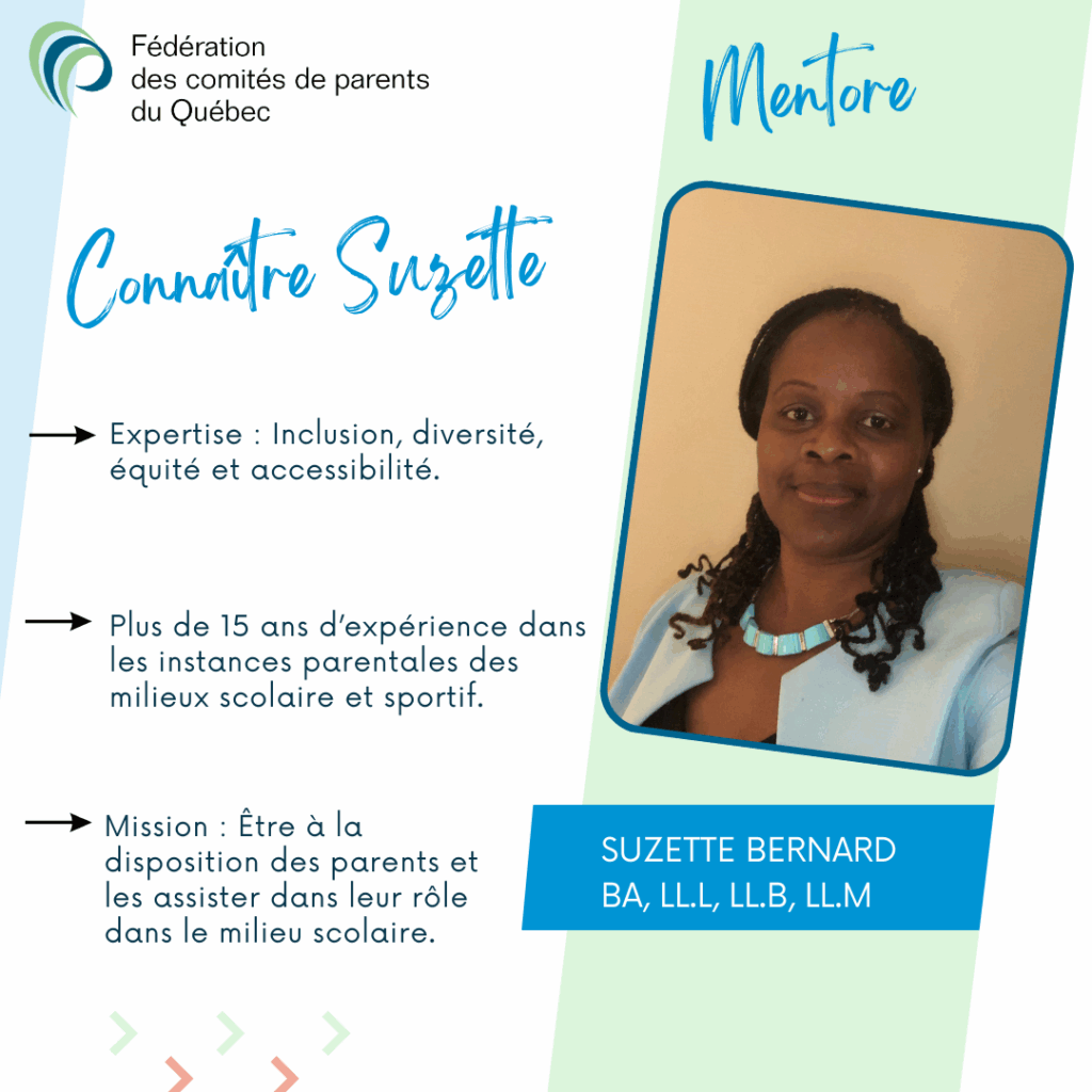 Notre équipe de formation est disponible pour offrir des mini-conférences, ateliers interactifs et formations aux comités de parents et conseils d’établissement. Notre équipe de mentorat accompagne les comités de parents membres de la FCPQ dans l’exercice de leurs sept fonctions prévues par la Loi.