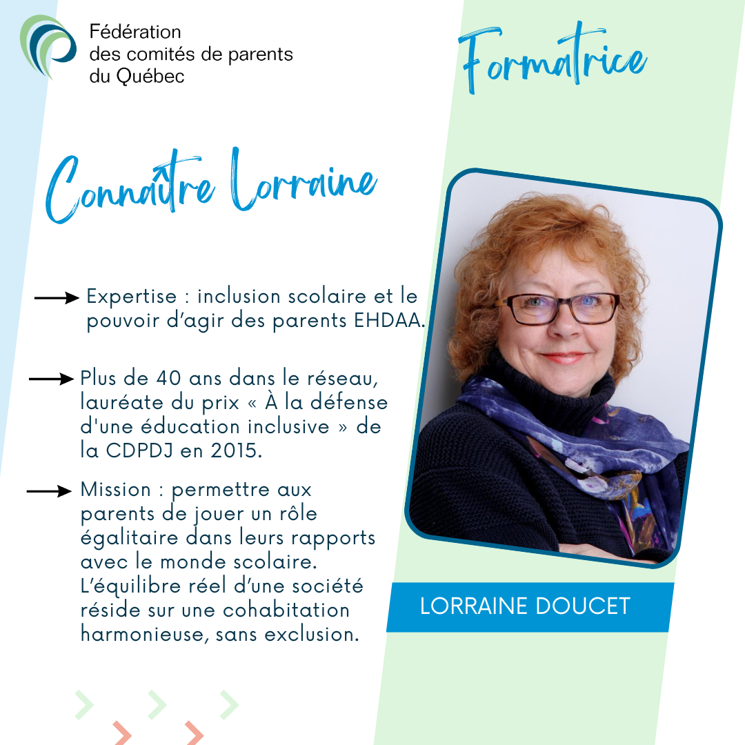 Nos formations prennent en compte les changements dans la loi et l’évolution des pratiques dans le milieu scolaire pour vous permettre d’actualiser vos connaissances et de continuer à être un acteur positif et efficace dans le milieu scolaire et auprès de vos enfants.